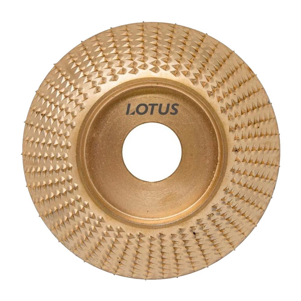 Disco Curvo de Desbaste em Madeira Lotus é ideal para desbastar. Esculpir e lixar madeiras, troncos e etc. Compatível com esmerilhadeiras e lixadeiras.