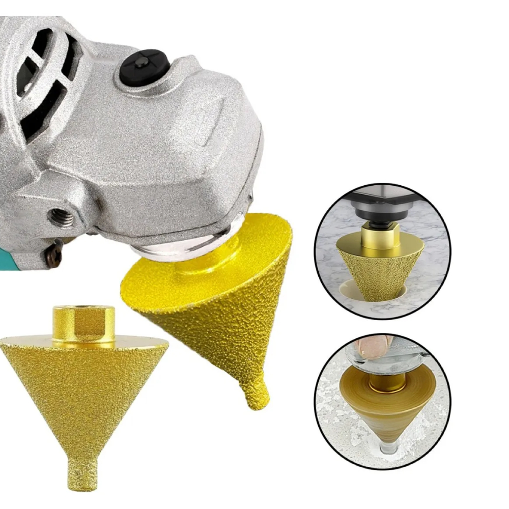 Fresa Diamantada Cônica de 5mm a 38mm Atopy indicada para uso em esmerilhadeira angular para acabamento perfeito e/ ou chanfros em furos pré-existentes em: cerâmica, mármore, granito, pedras decorativas e porcelanatos, removendo lascas, aliviando a tensão e evitando assim possíveis trincas e quebras.