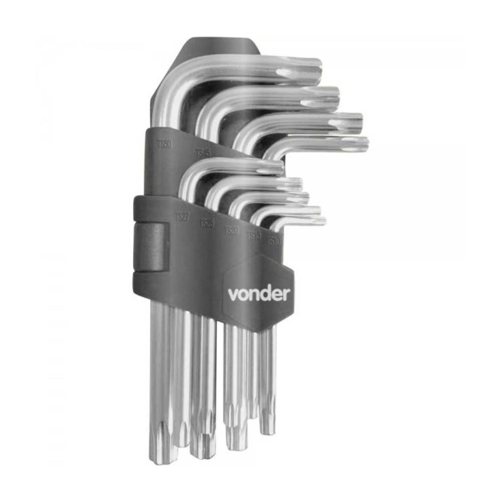 Jogo de Chaves Pentalobular com Furo Guia 9 Peças T10-T50 Vonder