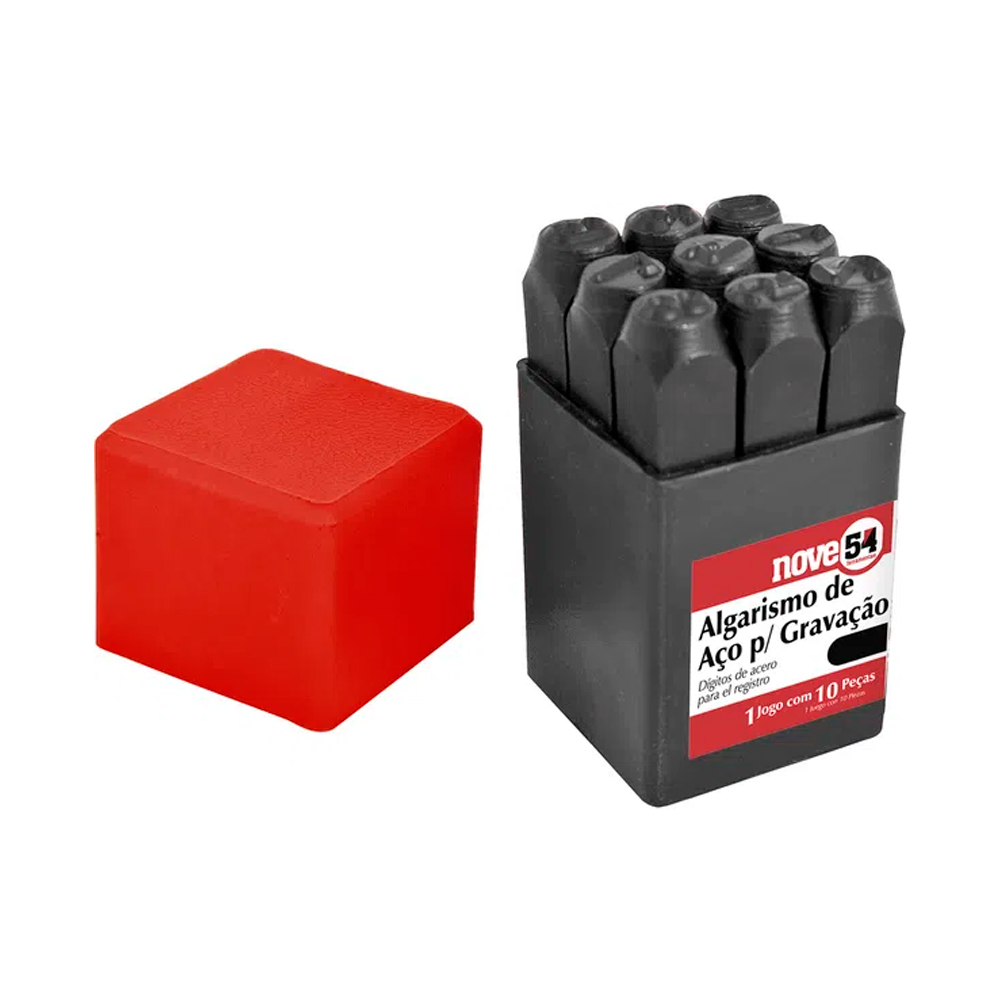 Jogo Punção Algarismo para Gravação 4mm em Aço 9 Peças de 0 a 9 Nove54