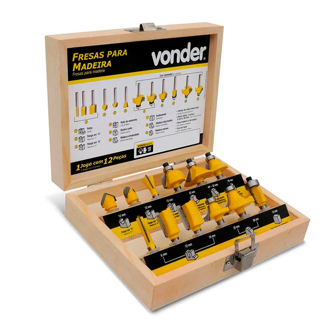 Jogo de Fresas Tupia para Madeira 12 Peças com Estojo Vonder