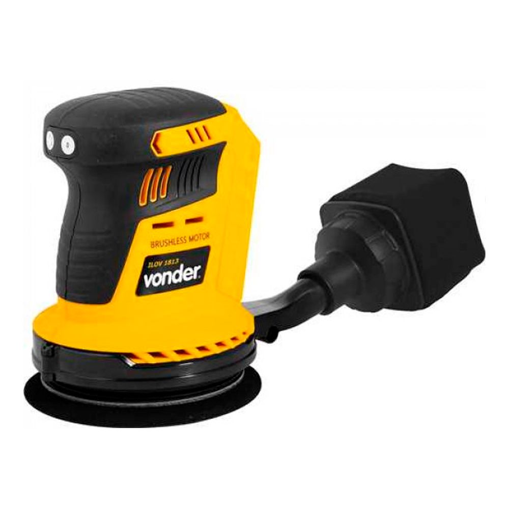 Lixadeira roto-orbital, para bateria intercambiável de 18 V, modelo ILOV 1813, Vonder (sem bateria e sem carregador) é indicada apenas para trabalhos em madeira e derivados.